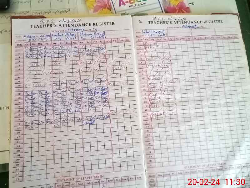 | Remarks (Use Separate Page if Required): Teacher Sehar Masood PST is absent from the school since 10 Jan 2024 till date please stop her salary she had gone to abroad | |||||