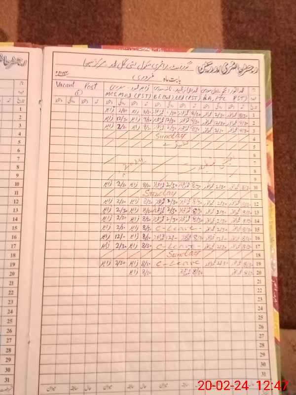 | CNIC | Full Name | Designation | R/C | Absence During Last Calender Month |
