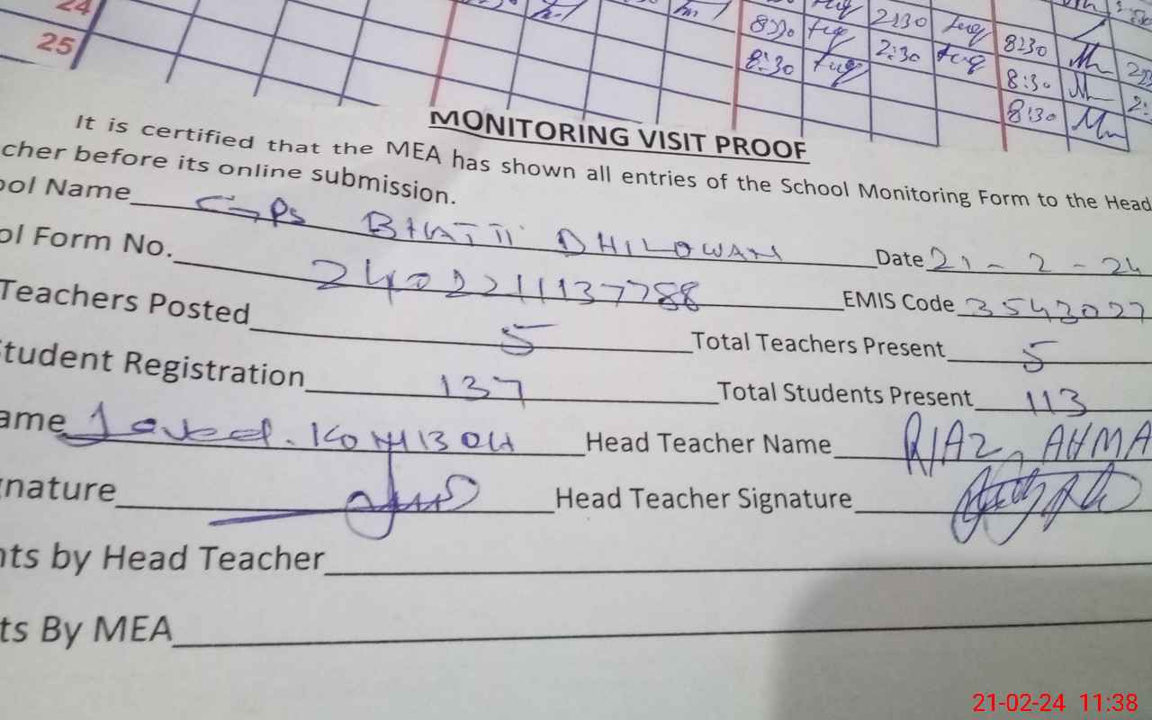 | EMIS Code: 35430278 | Name of School: GPS BHATTI DHILWAN | |||