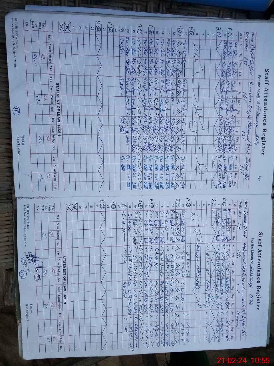 | CNIC | Full Name | Designation | R/C | Absence During Last Calender Month |