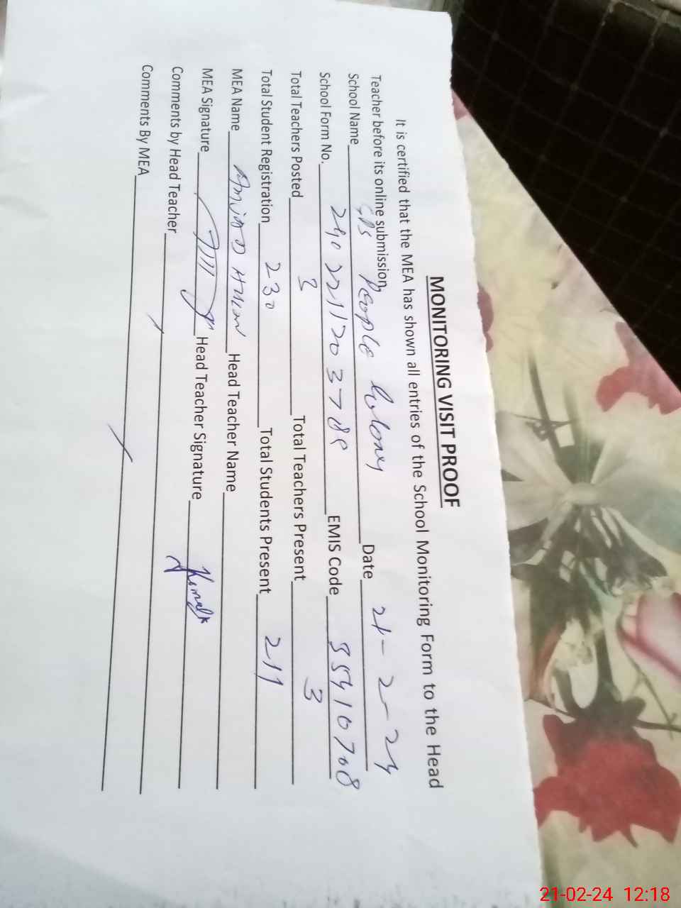 | EMIS Code: 35410708 | Name of School: GPS PEOPLES COLONY | |||