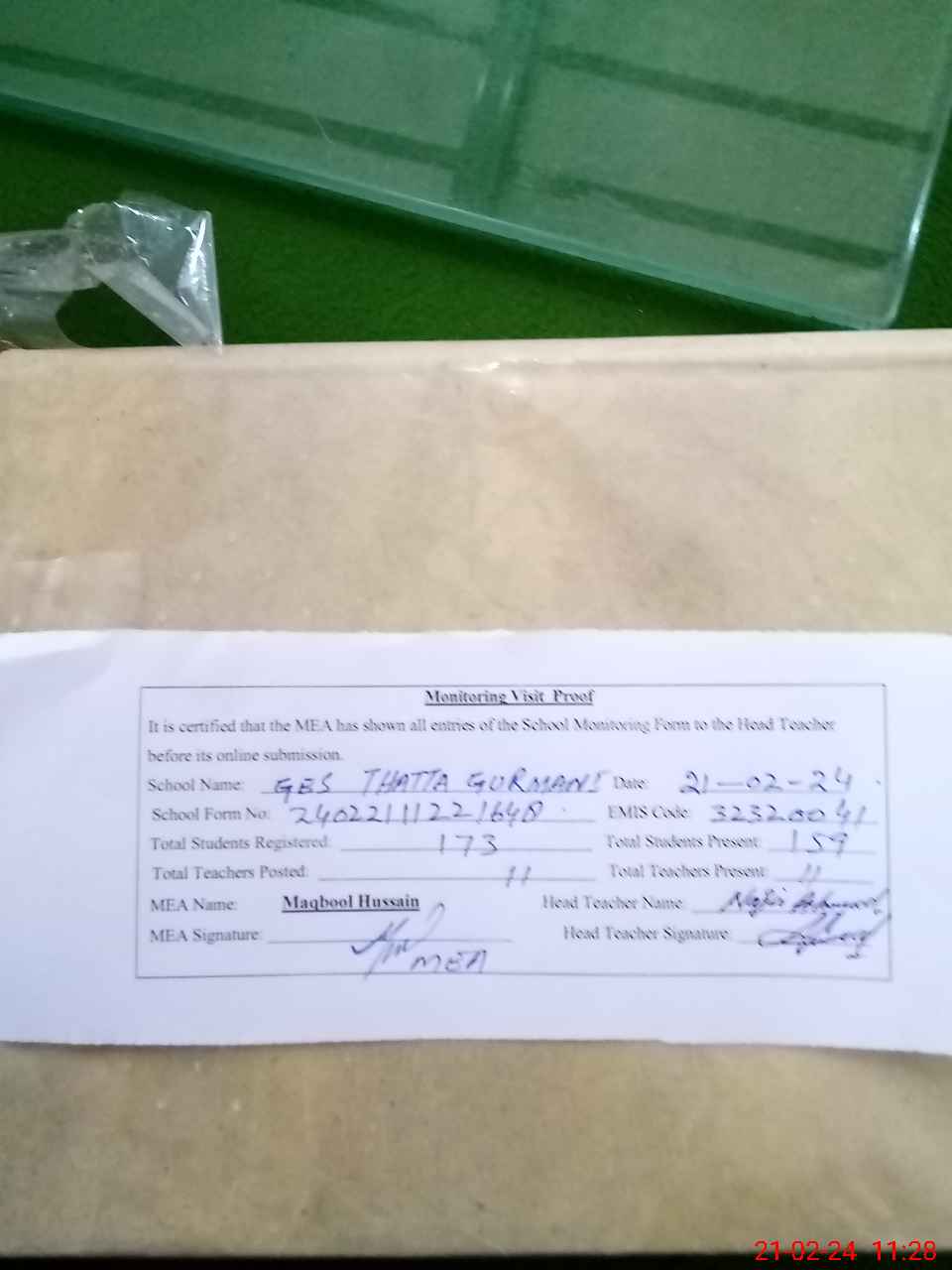 | EMIS Code: 32320041 | Name of School: GES THATTA GURMANI | |||