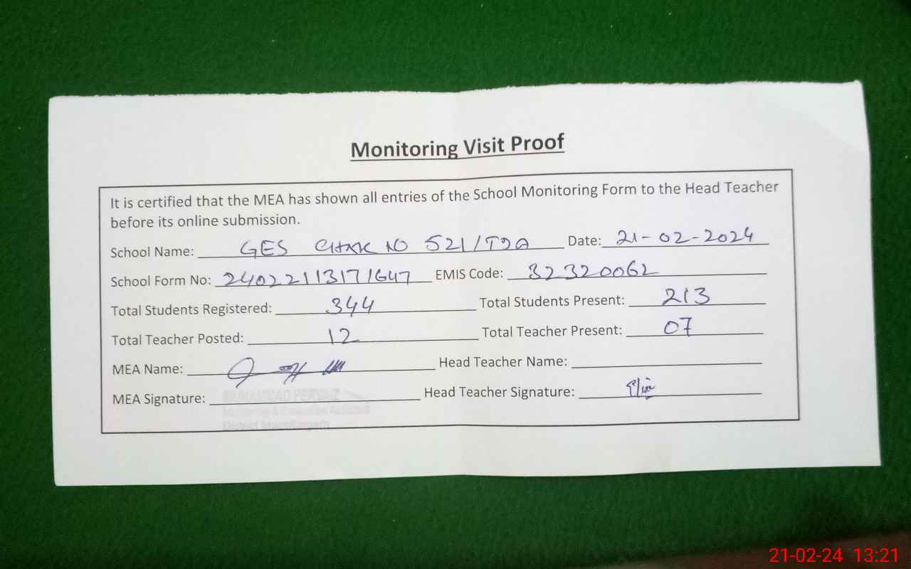 | EMIS Code: 32320062 | Name of School: GES CHAK NO.521 TDA | |||