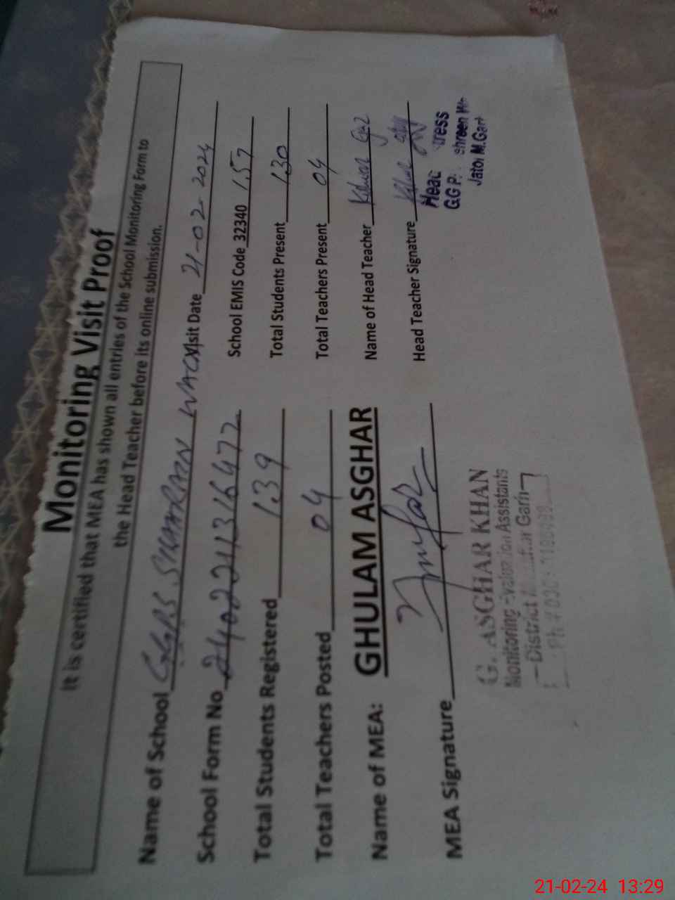 | EMIS Code: 32340157 | Name of School: GGPS SEHRIEN WALA | |||
