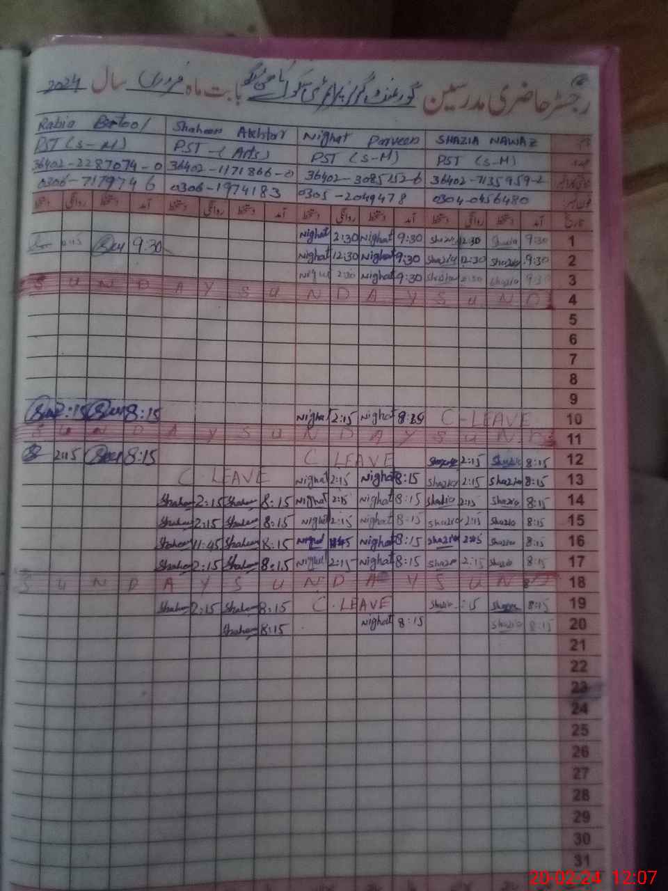 | Name: SH**** NA**** Designation: (School Headmaster's/Headmistress's) PST Phone/Cell Number: 03**** |