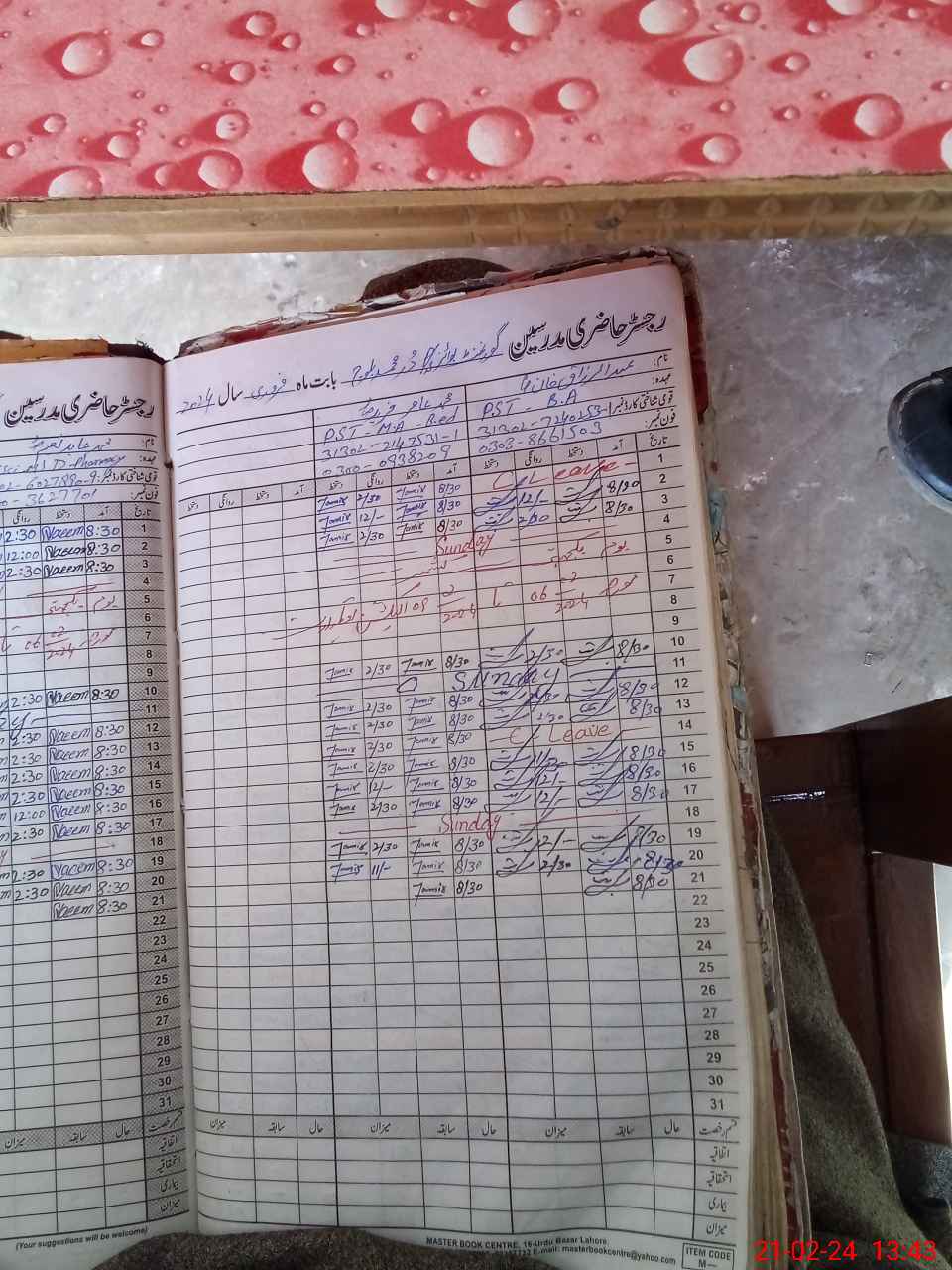 | CNIC | Full Name | Designation | R/C | Absence During Last Calender Month |