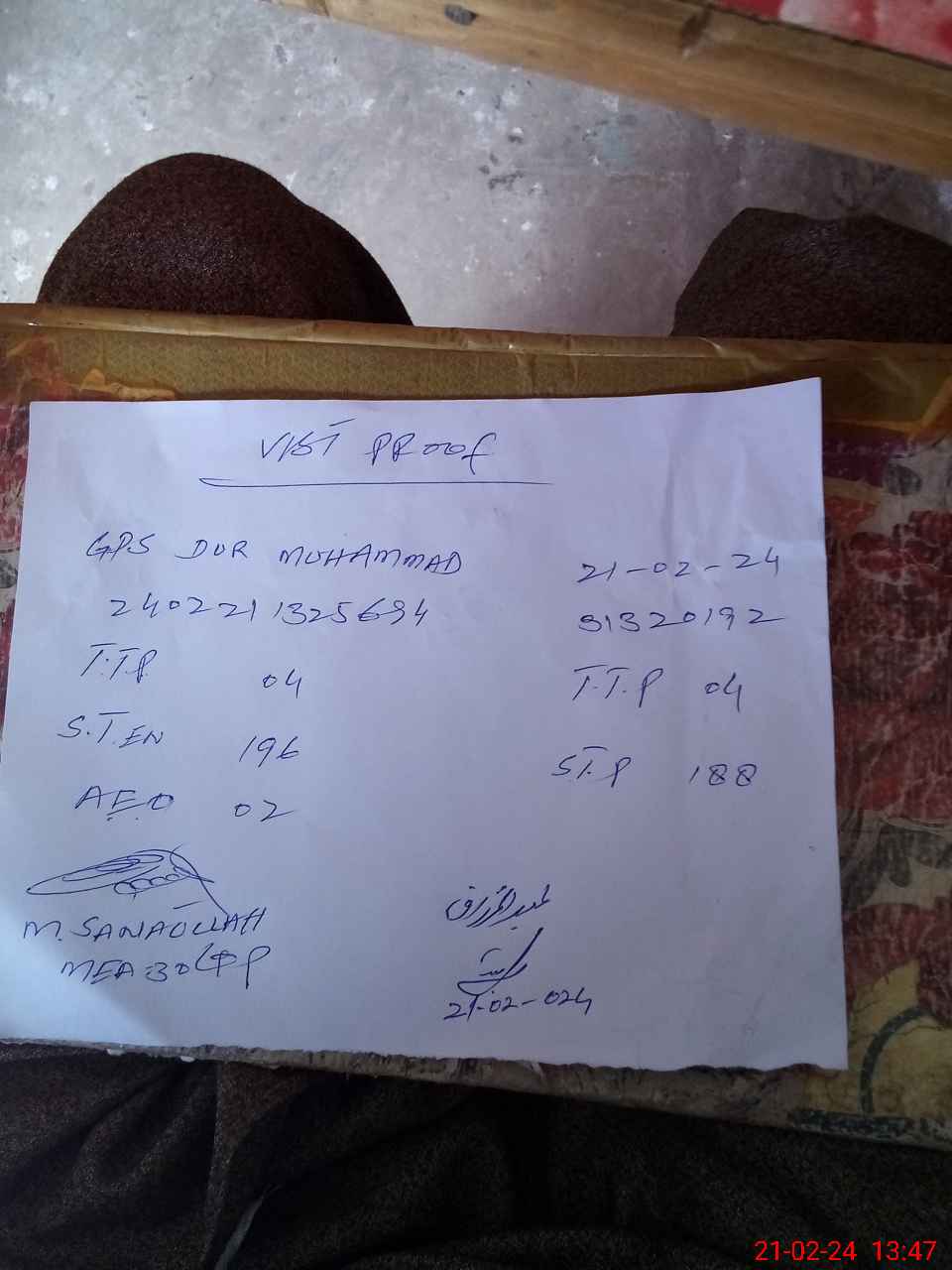| Monitoring Date: 21-02-2024 | Start Time: 21-02-2024 01:25 PM | End Time: 21-02-2024 01:48 PM | Name of MEA: Mu**** Sa**** Ul**** Sa**** | |