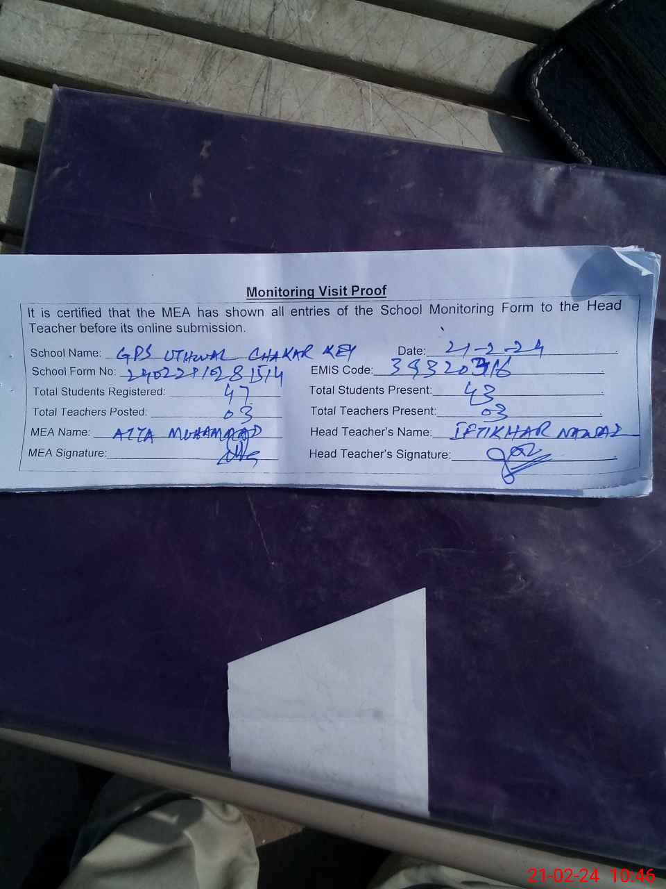| EMIS Code: 39320316 | Name of School: GPS UTHWAL CHAKAR KAY | |||