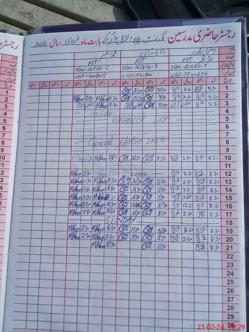 | Name: Mu**** Hu**** Designation: (School Headmaster's/Headmistress's) PST Phone/Cell Number: 03**** |
