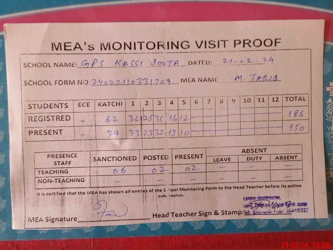 | EMIS Code: 36410323 | Name of School: GPS KASSI JOOTA, NAWAN SHEHR | |||