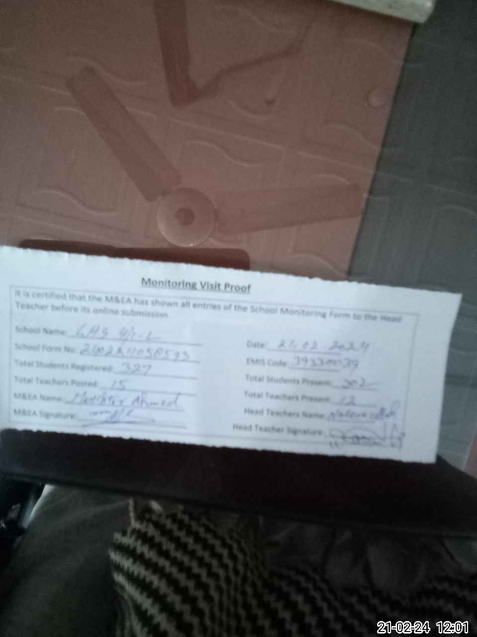 | EMIS Code: 39330039 | Name of School: GHS 4 1 L | |||