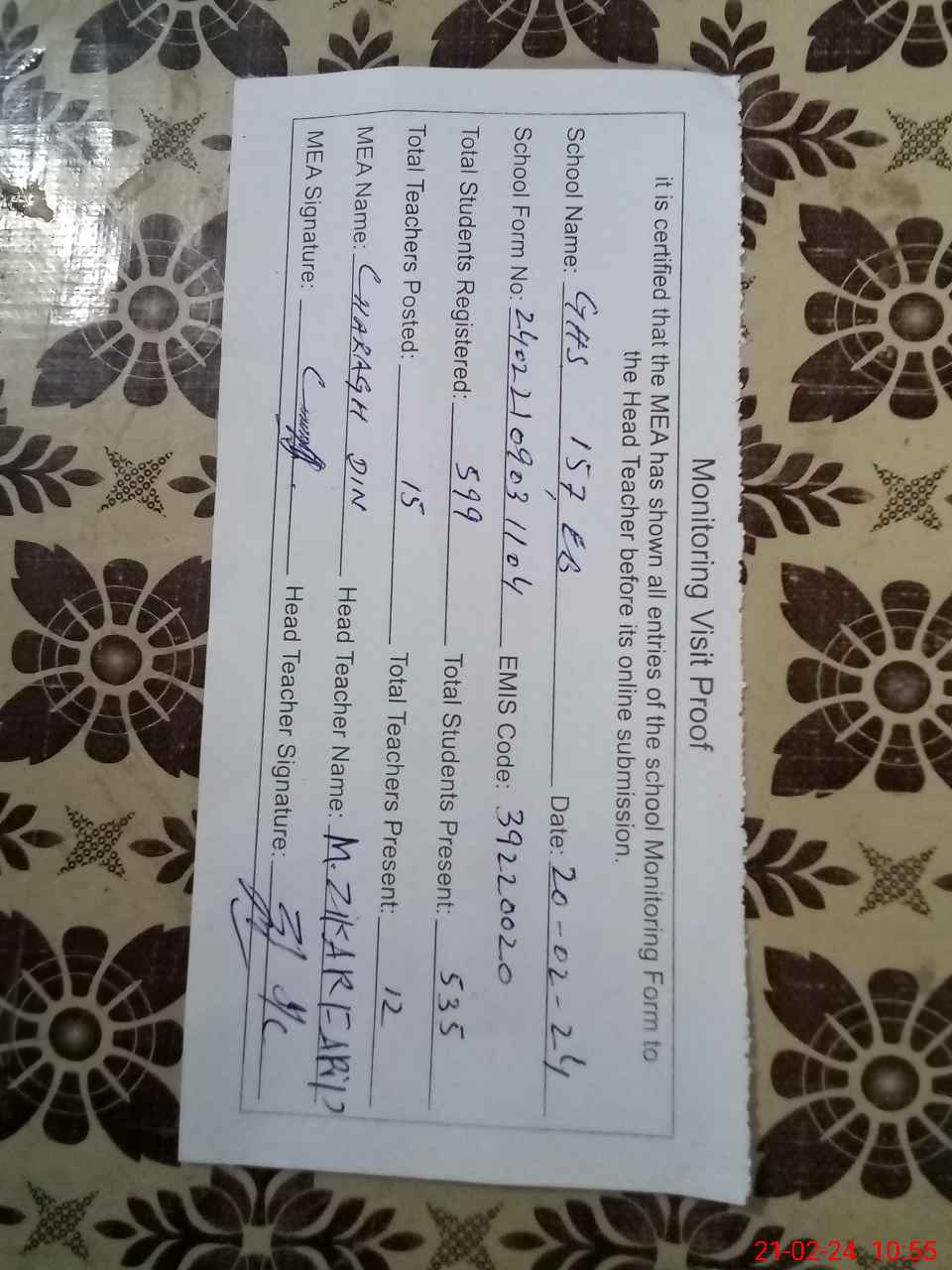 | EMIS Code: 39220020 | Name of School: GHS 157/EB | |||