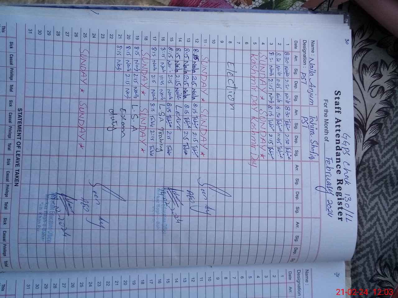 | Name: Na**** An**** Designation: (School Headmaster's/Headmistress's) PST Phone/Cell Number: 03**** |