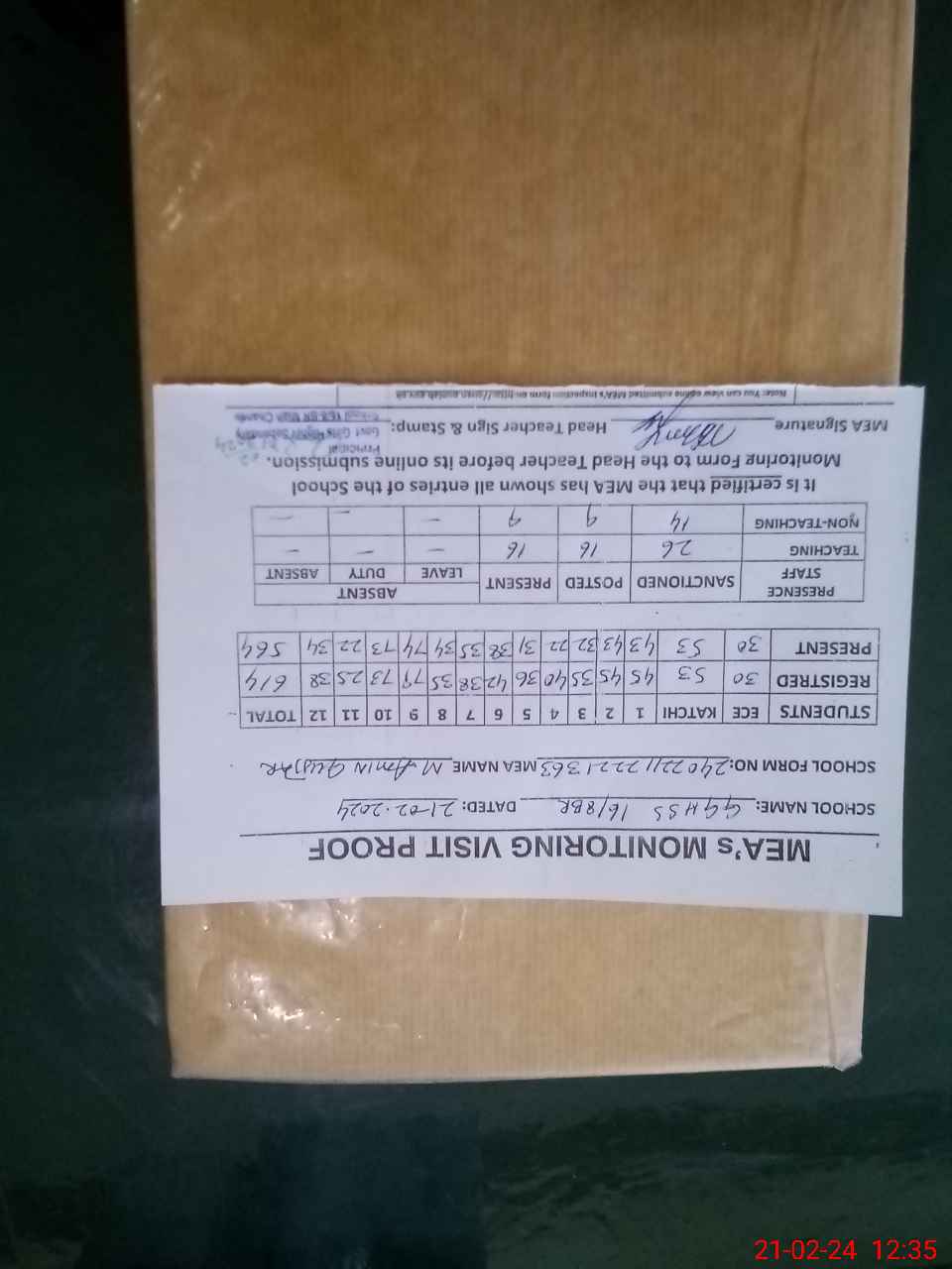 | Certified that this School was Inspected by the Undersigned MEA/DMO Today and the Information Stated Above is as Per Record. | |||||