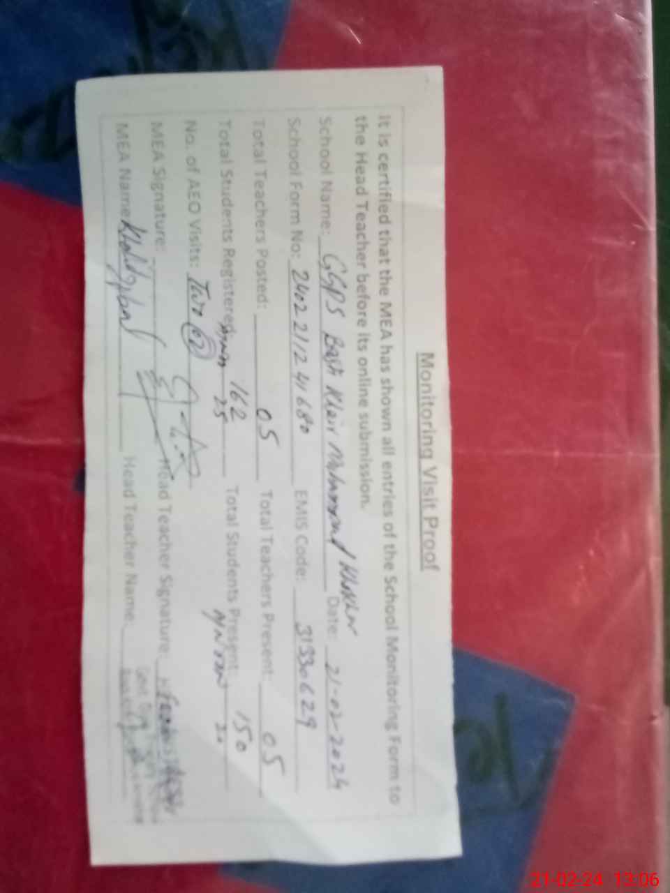 | EMIS Code: 31330629 | Name of School: GGPS BASTI KHAIR MUHAMMAD KHOKHAR | |||