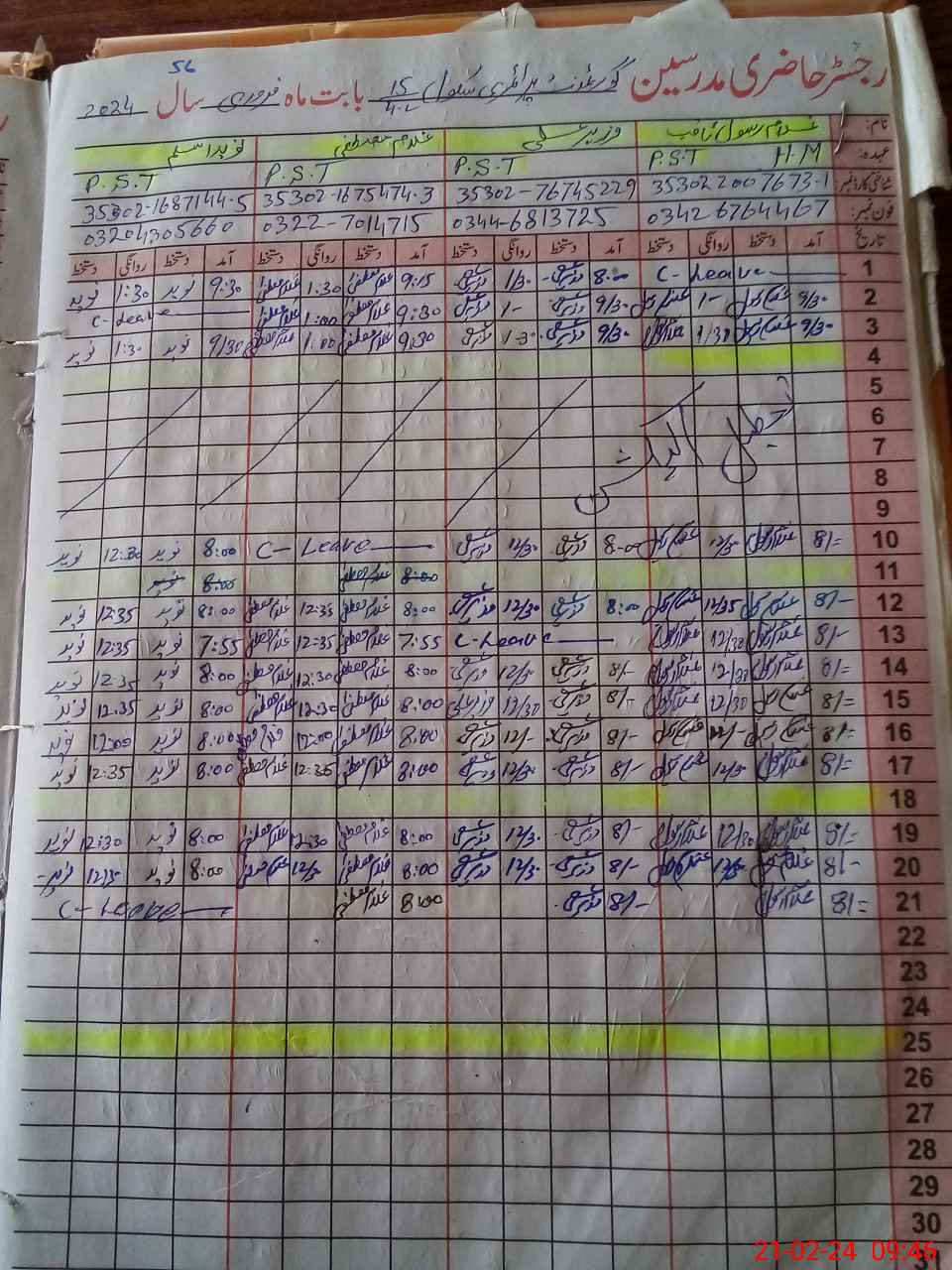 | CNIC | Full Name | Designation | R/C | Absence During Last Calender Month |