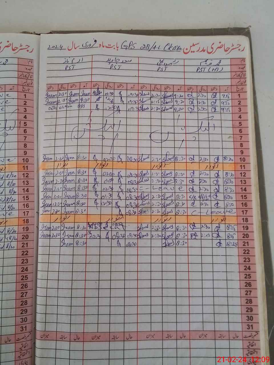 | CNIC | Full Name | Designation | R/C | Absence During Last Calender Month |