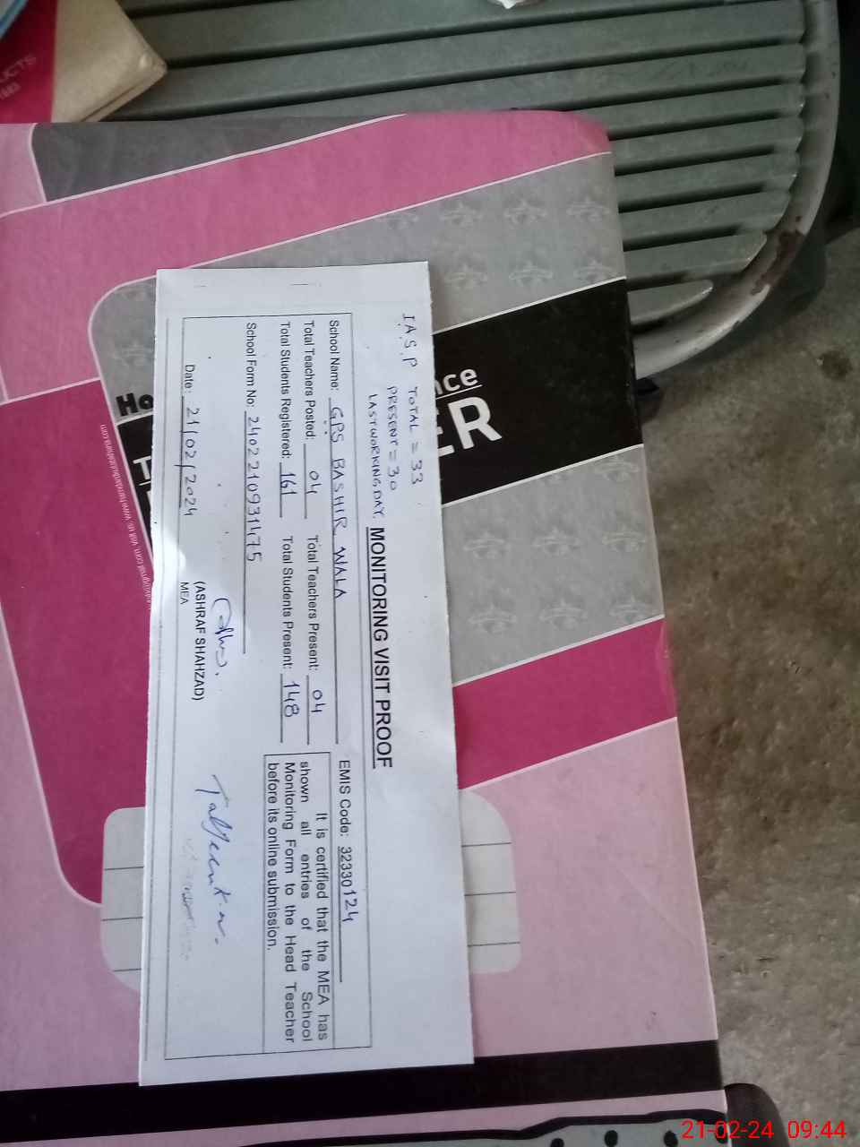 | EMIS Code: 32330124 | Name of School: GPS BASHIR WALA | |||