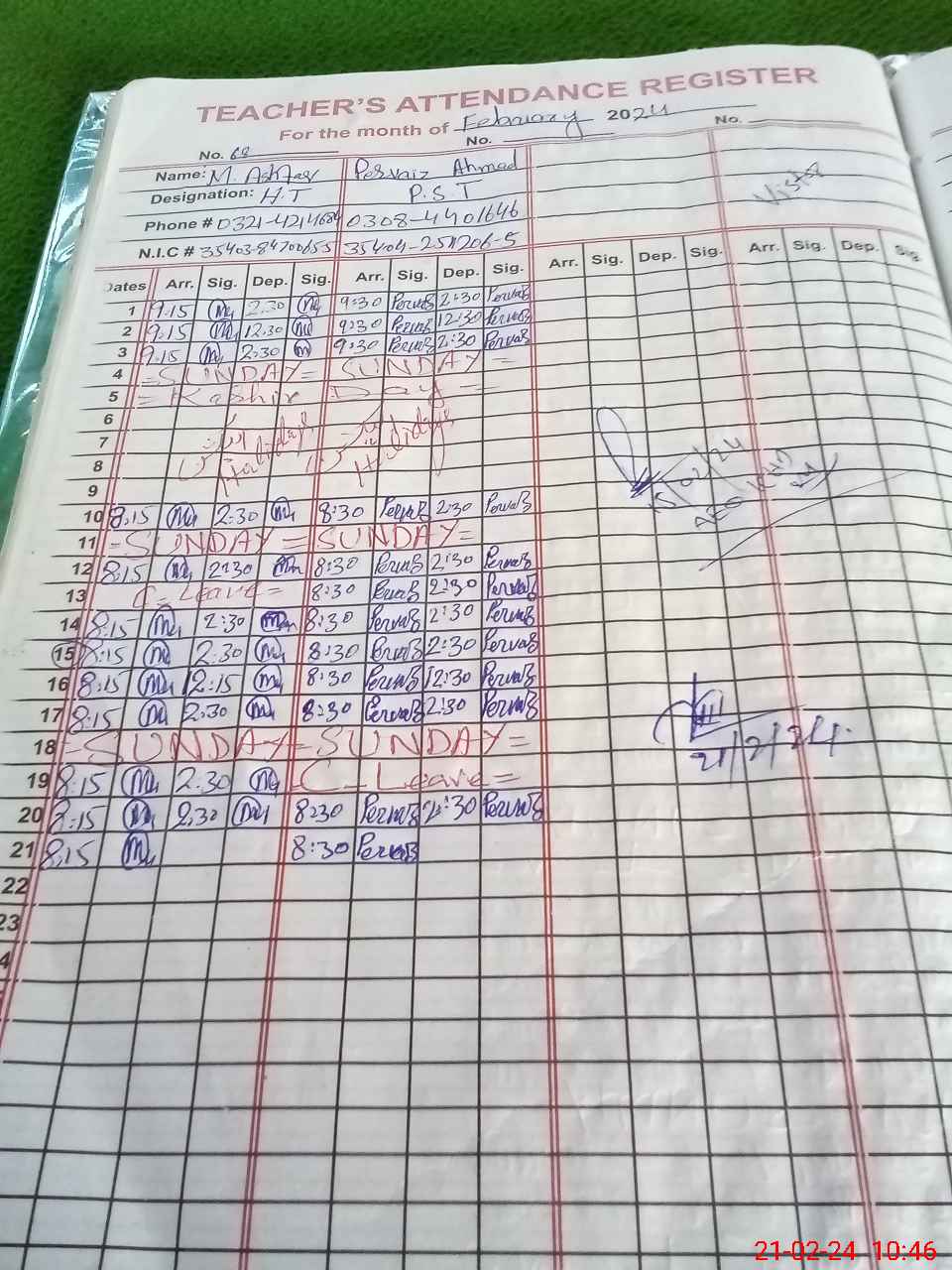 | Name: MAS**** Designation: (School Headmaster's/Headmistress's) PST Phone/Cell Number: 03**** |