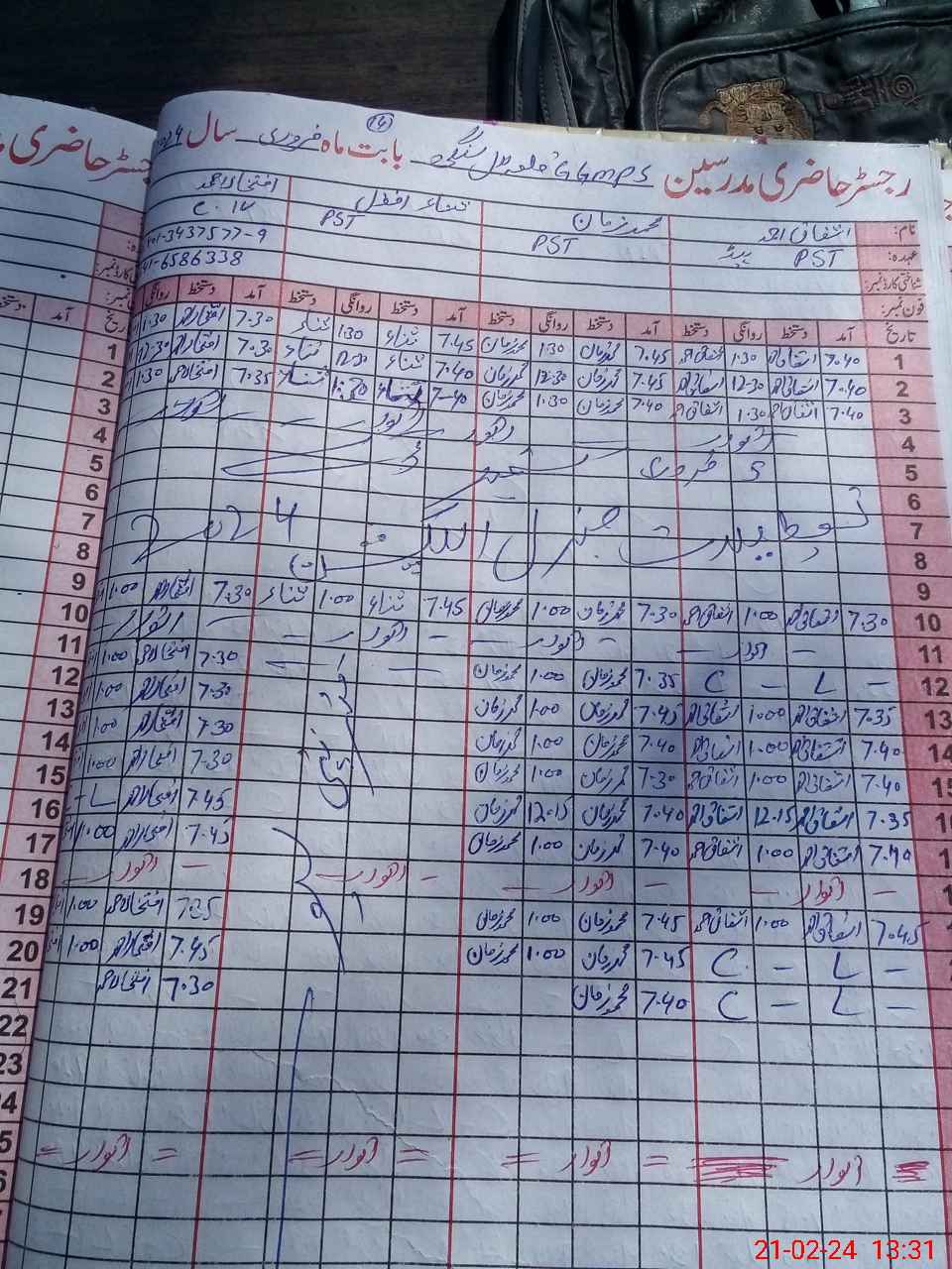 | Name: AS**** AH**** Designation: (School Headmaster's/Headmistress's) PST Phone/Cell Number: 03**** |