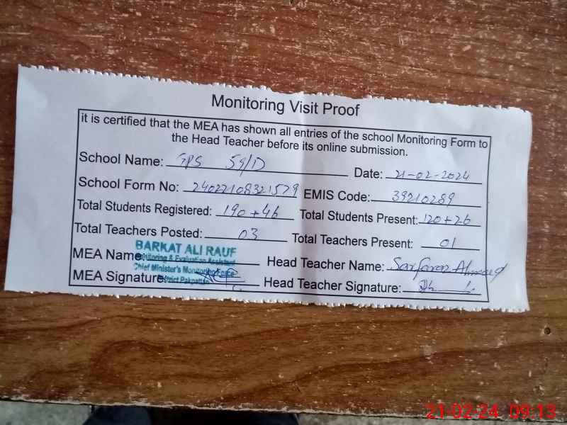 | EMIS Code: 39210289 | Name of School: GPS 59/D | |||