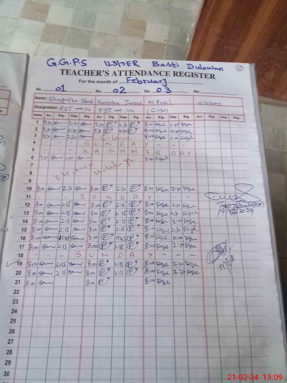 | Name: SH**** SH**** Designation: (School Headmaster's/Headmistress's) PST Phone/Cell Number: 03**** |
