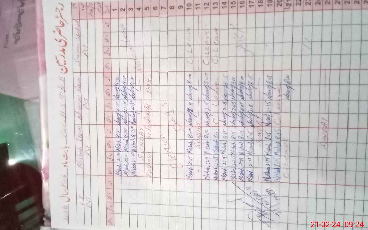 | 35**** | Sa**** Sh**** | PST | Regular | 0 | 0 | 0 | 0 | 0 | 0 | 0 | 0 | 0 | Maternity |