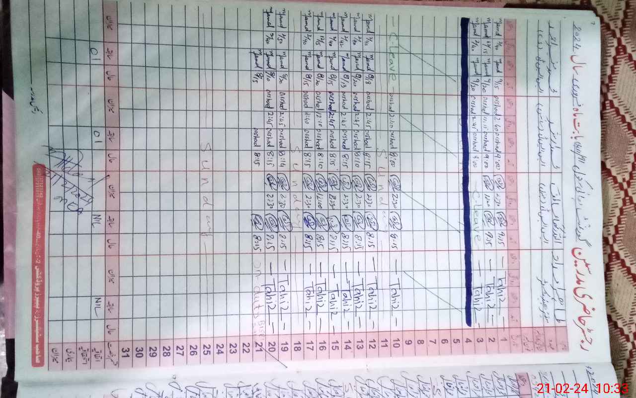 | 36**** | Sa**** Ah**** | 3 | 1 | 0 | 0 | 0 | 0 | 0 | 0 | 0 | 0 | 0 | Exam Duty |