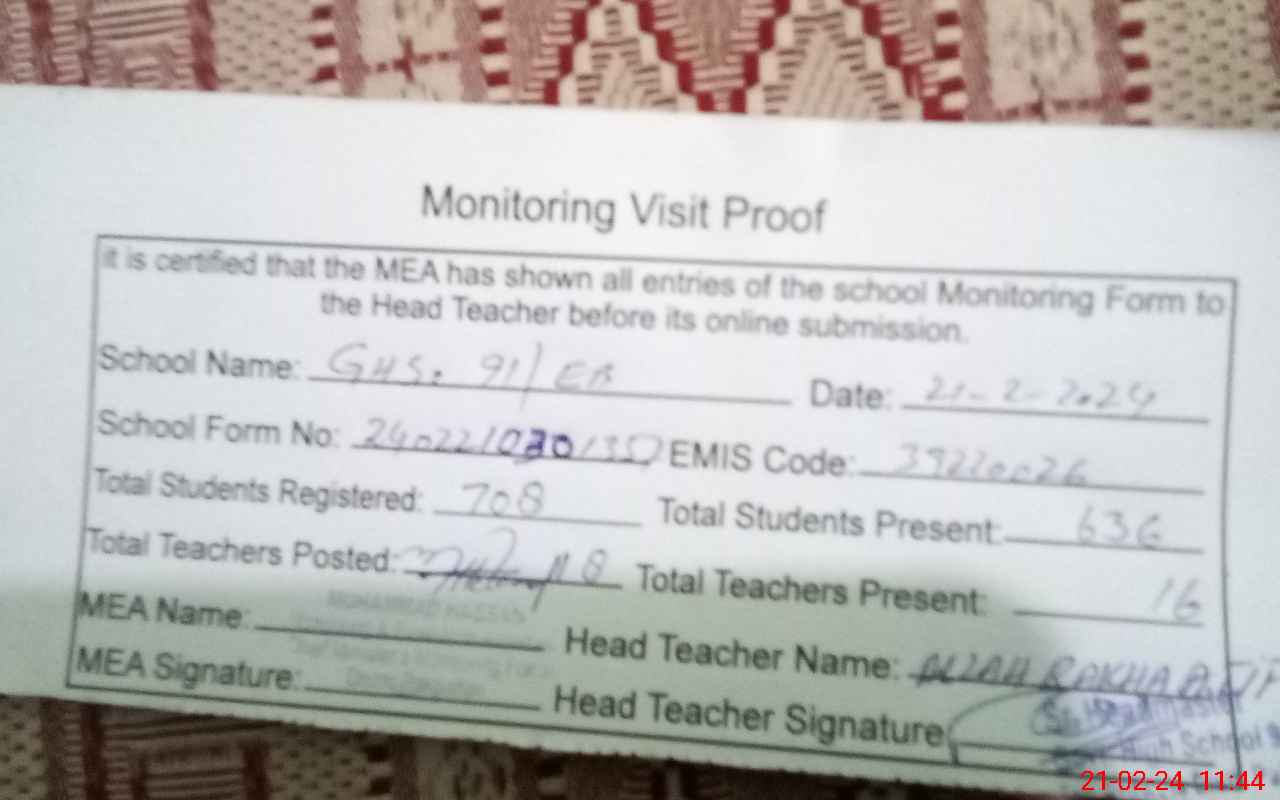 | EMIS Code: 39220026 | Name of School: GHS 91/EB | |||