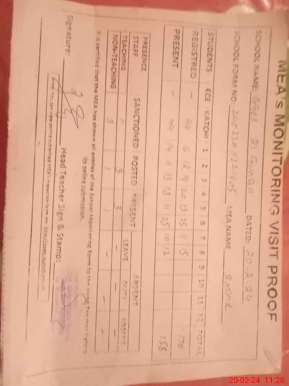 | EMIS Code: 36410144 | Name of School: GGES 21 GHAGH | |||