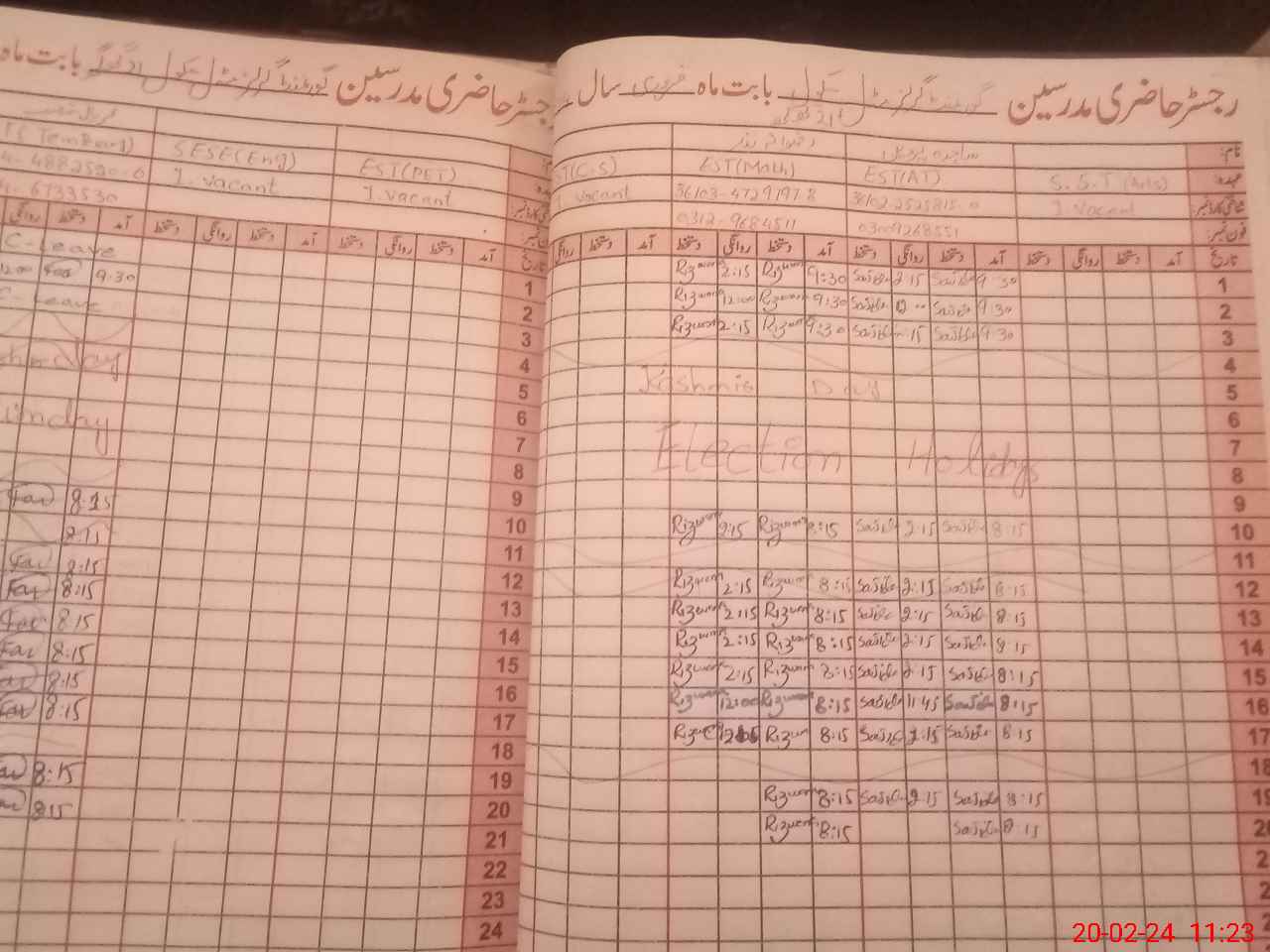 | Name: Sa**** Pe**** Designation: (School Headmaster's/Headmistress's) Est (Arabic ) Phone/Cell Number: 03**** |
