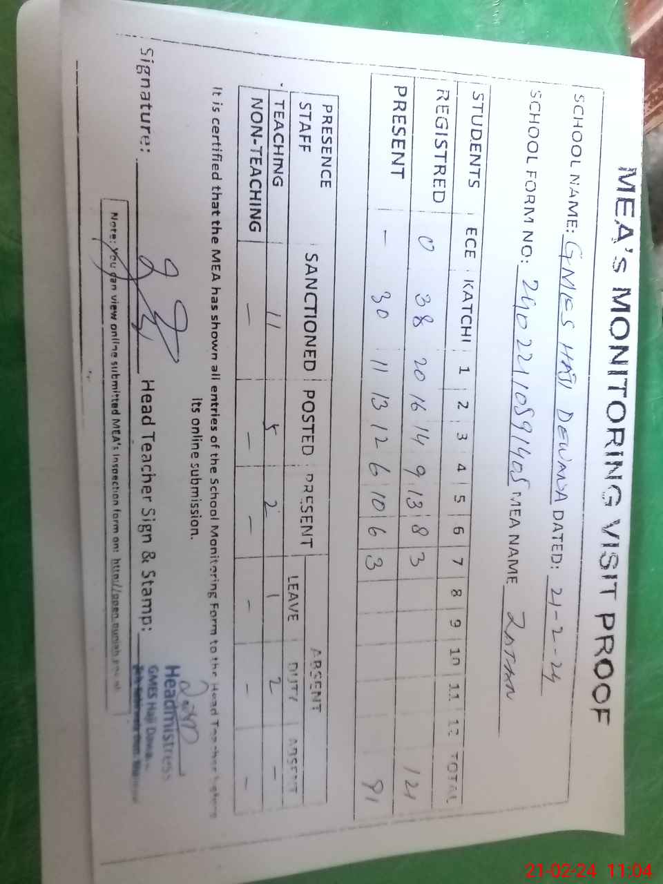 | Certified that this School was Inspected by the Undersigned MEA/DMO Today and the Information Stated Above is as Per Record. | |||||
