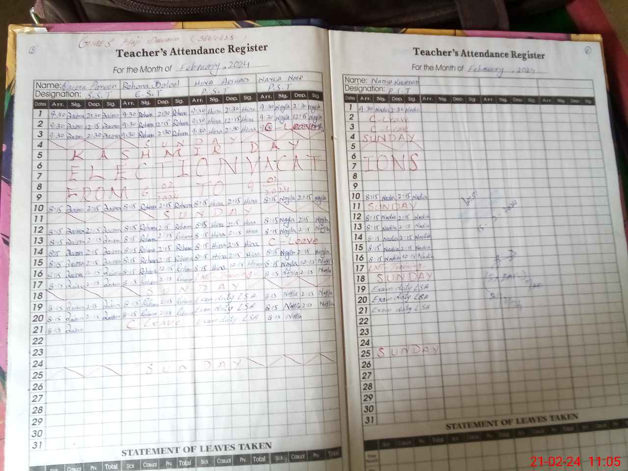 | 36**** | Na**** Kh**** | 1 | 1 | 0 | 0 | 0 | 0 | 0 | 0 | 0 | 0 | 0 | Exam Duty |