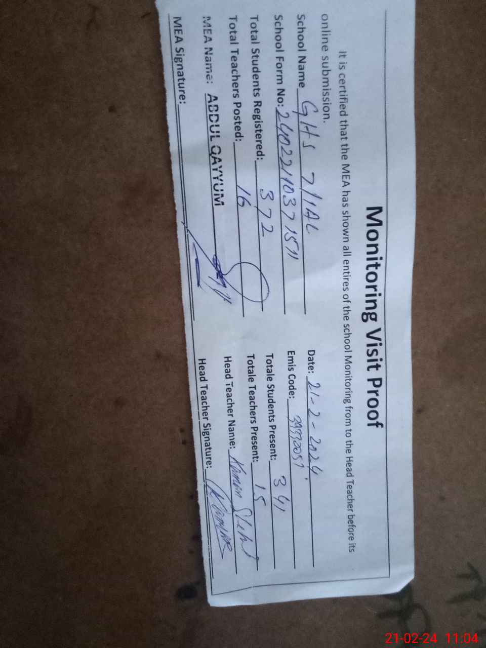 | EMIS Code: 39330051 | Name of School: GHS 7/1-AL OKARA | |||