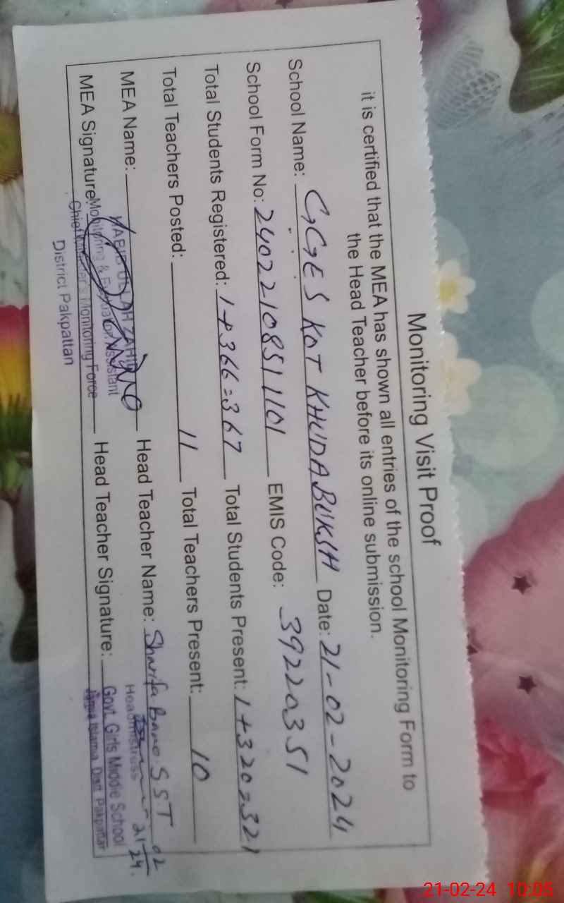 | EMIS Code: 39220351 | Name of School: GGES KOT KHUDA BUKSH | |||