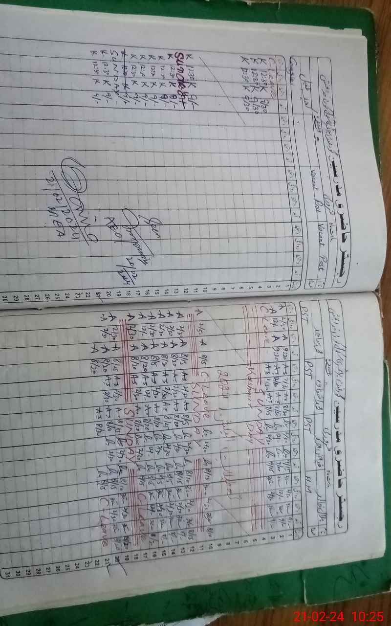 | CNIC | Full Name | Designation | R/C | Absence During Last Calender Month |