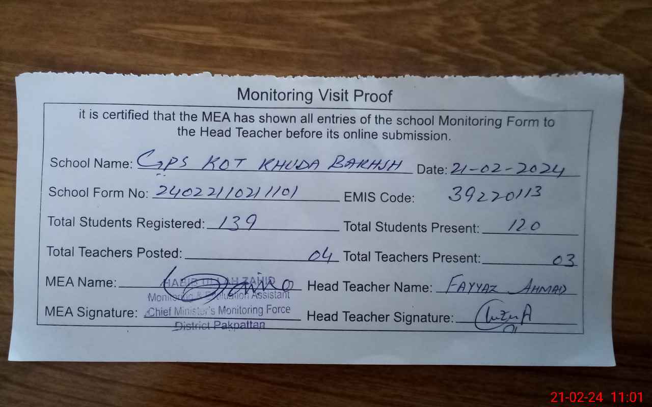 | EMIS Code: 39220113 | Name of School: GPS KOT KHUDA BUKHSH | |||