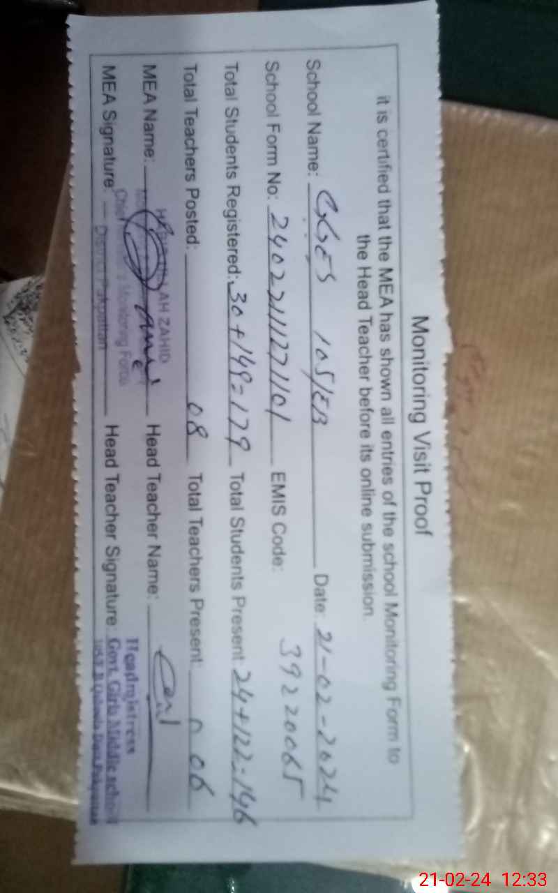 | Certified that this School was Inspected by the Undersigned MEA/DMO Today and the Information Stated Above is as Per Record. | |||||