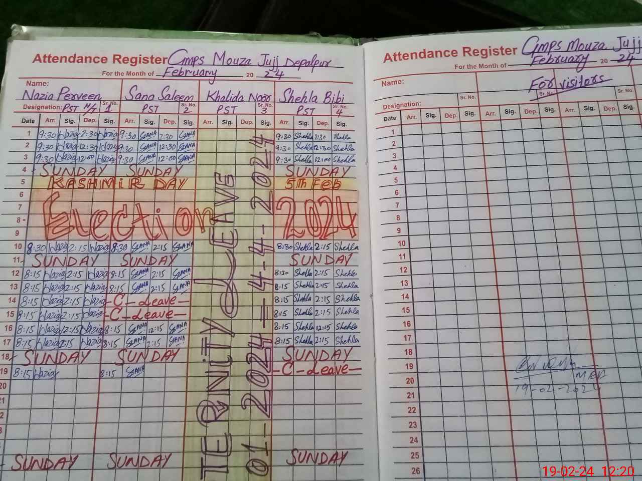 | CNIC | Full Name | Designation | R/C | Absence During Last Calender Month |