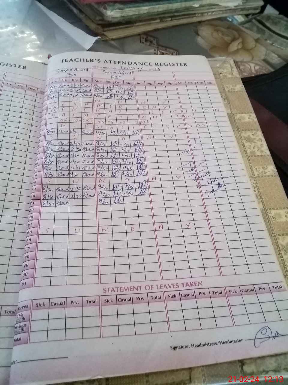 | Name: SA**** AH**** Designation: (School Headmaster's/Headmistress's) PST Phone/Cell Number: 03**** |