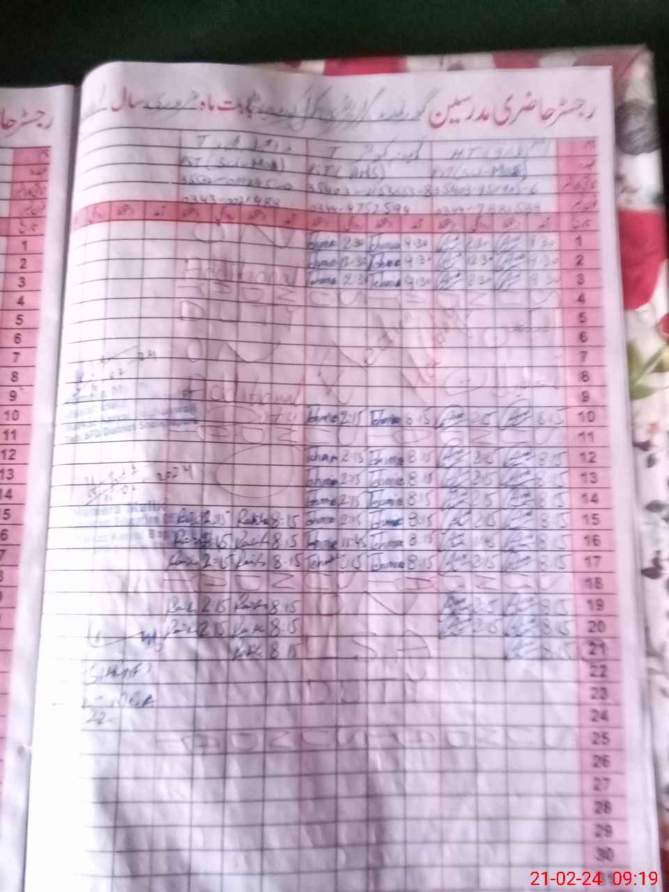 | 35**** | Te**** Ka**** | 1 | 1 | 0 | 0 | 0 | 0 | 0 | 0 | 0 | 0 | 0 | Exam Duty |