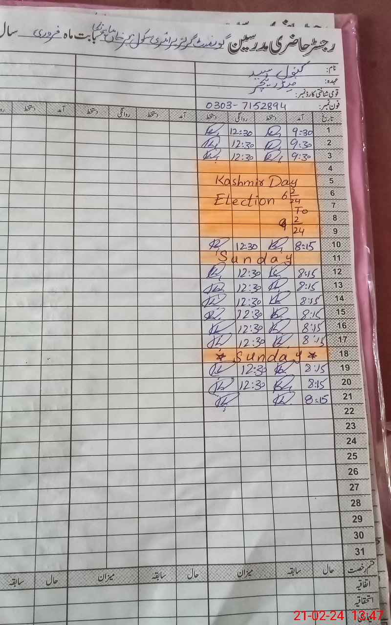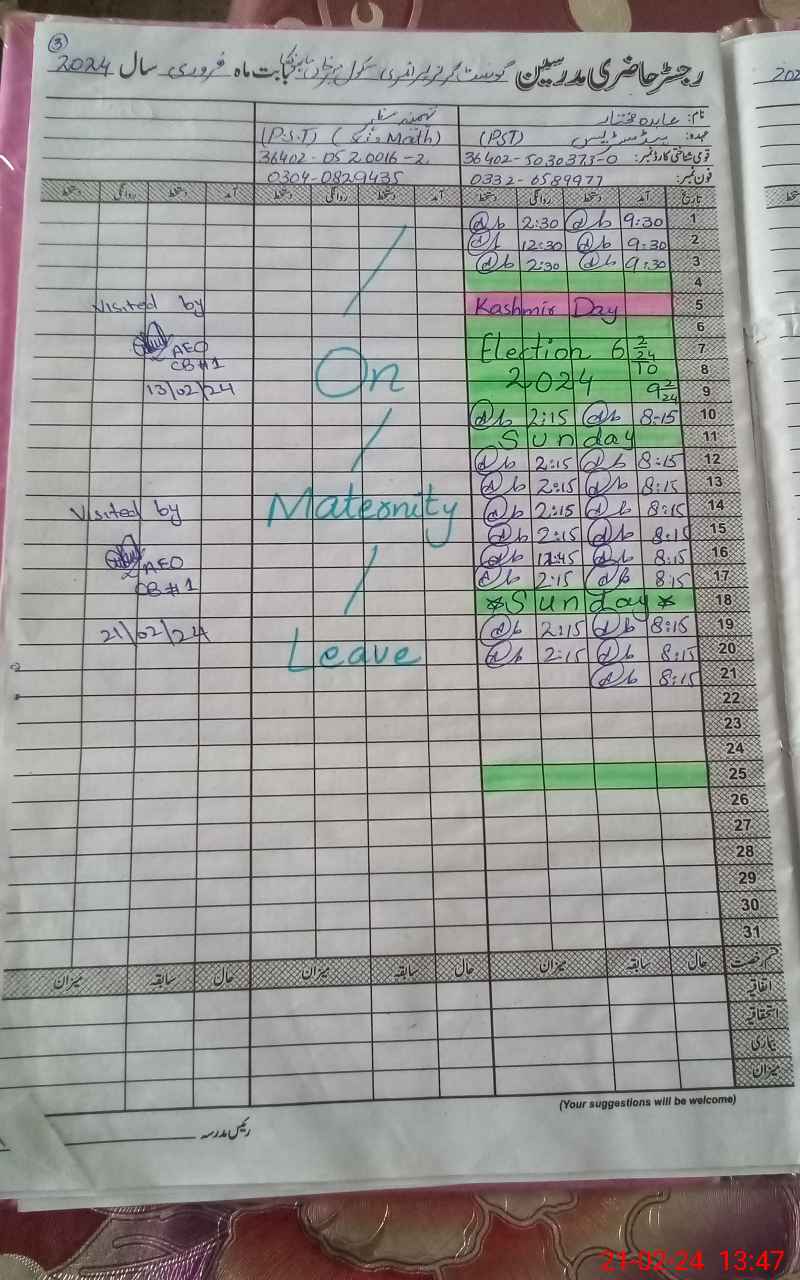 | Name: Ab**** Mu**** Designation: (School Headmaster's/Headmistress's) PST Phone/Cell Number: 03**** |