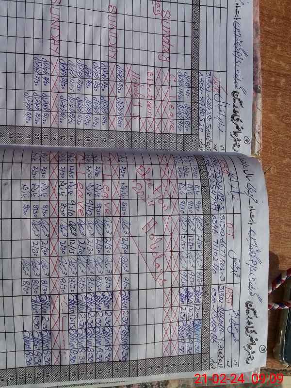 | CNIC | Full Name | Designation | R/C | Absence During Last Calender Month |