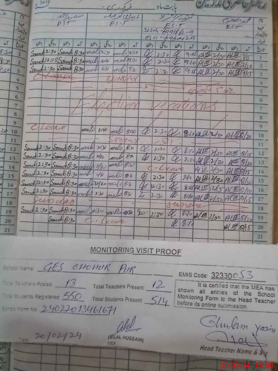 | EMIS Code: 32330053 | Name of School: GES CHUHAR PUR | |||