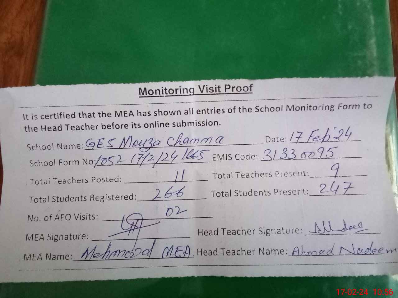 | EMIS Code: 31330095 | Name of School: GES MOUZA CHANNA | |||