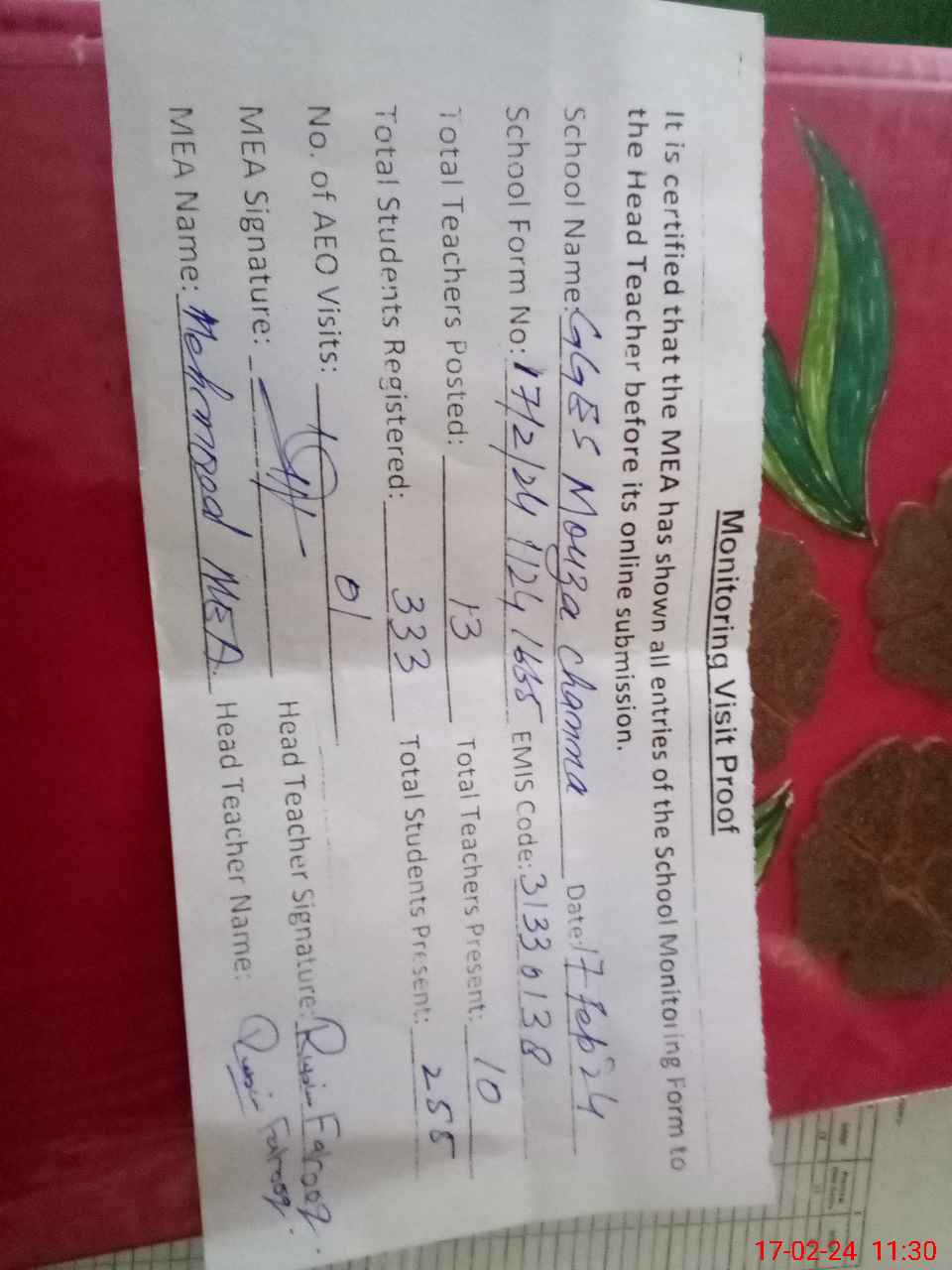 | EMIS Code: 31330138 | Name of School: GGES MOUZA CHANNA | |||