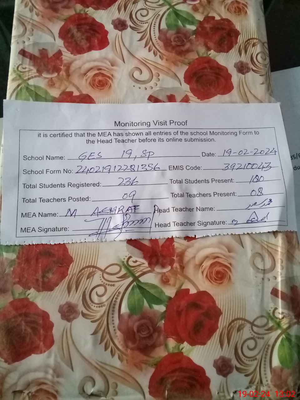 | EMIS Code: 39210043 | Name of School: GES 19/SP PAKPATTAN | |||