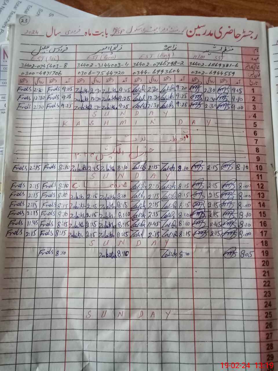 | CNIC | Full Name | Designation | R/C | Absence During Last Calender Month |