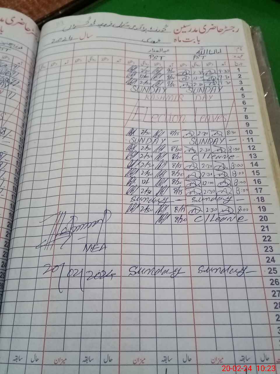 | Name: AM**** UL**** KH**** Designation: (School Headmaster's/Headmistress's) PST Phone/Cell Number: 03**** |