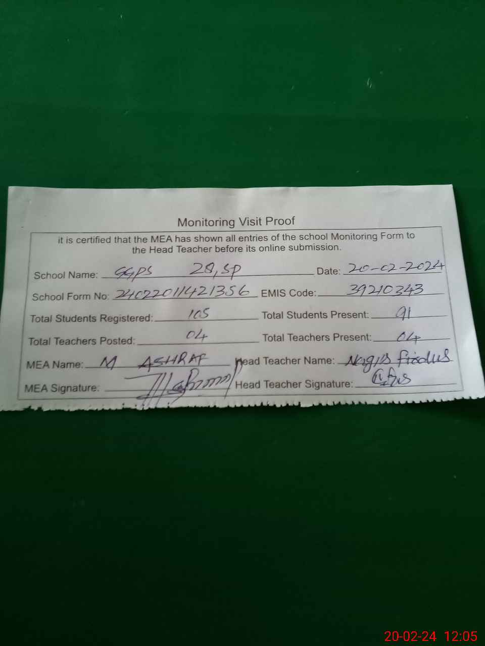 | EMIS Code: 39210343 | Name of School: GGPS 28 SP | |||